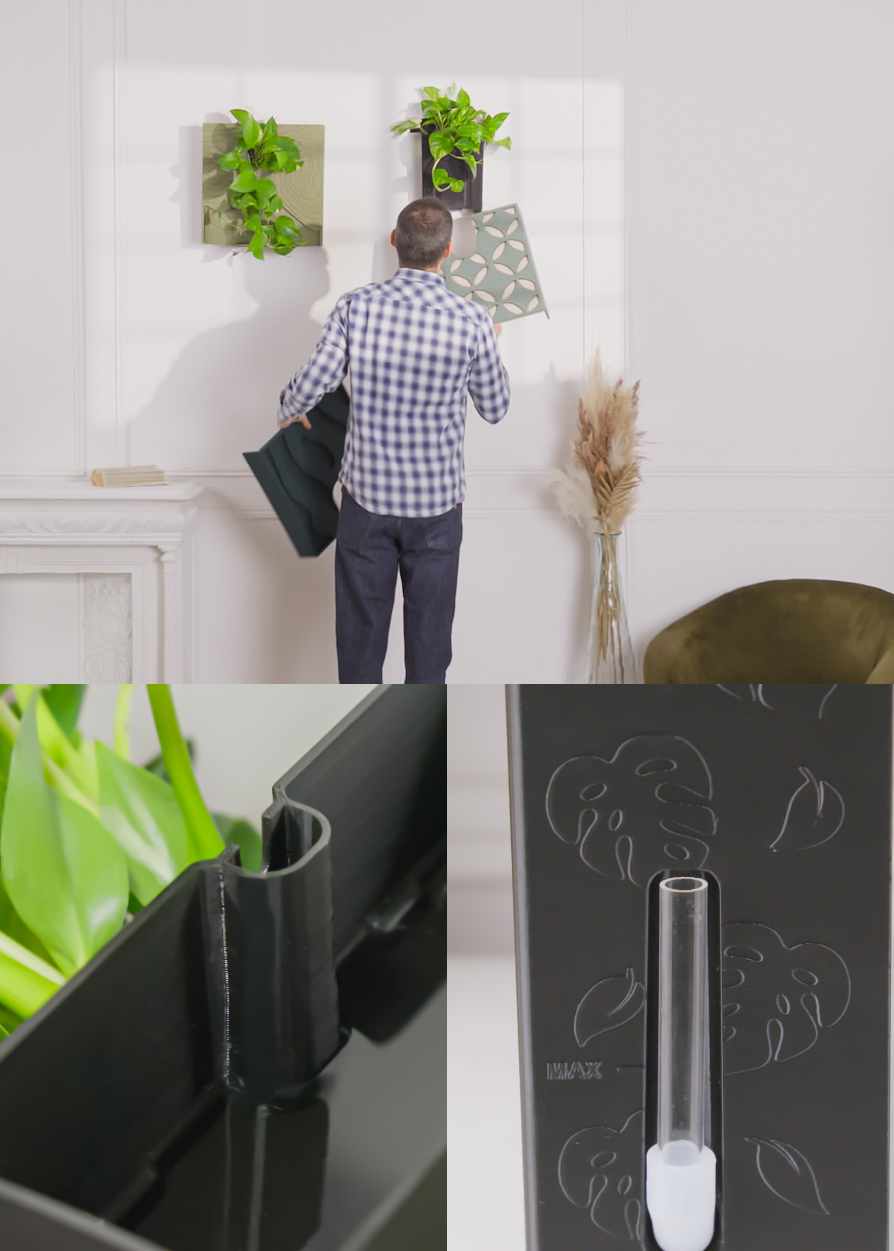 Ajoutez une façade interchangeable ou une plante pour personnaliser votre tableau végétal.