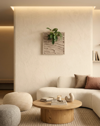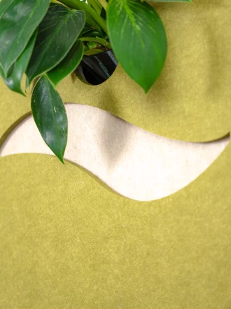 La collection Wind d’Artena marie décoration murale végétale et confort acoustique dans un même objet. Les courbes douces du revêtement en feutre PET recyclé haute densité (1 900 g/m²) évoquent le frémissement du vent dans les feuilles, apportant mouvement et légèreté à votre intérieur.